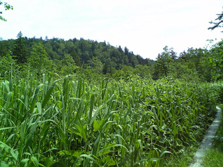目指す山頂は、森の向こうに隠れています。