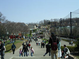 (左)動物園正門入ってすぐ。右のネットエリアは、水鳥飼育池「ととりの村」