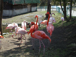 「ととりの村」では、コハクチョウやカモなどが飼育され、上のフラミンゴもその一つ。