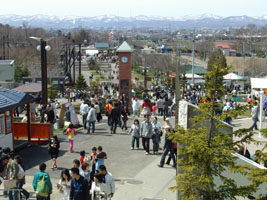 (右)「ほっきょくぐま館」近辺から正門を振り返ったところ。遠くに旭川の街並みが見えます。