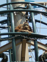 飼育舎からは、ロープを伝って遊びに来ます。