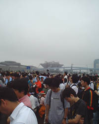 さすが、コミケと言った感じで、雨の降る中、実に数千数万の人だかり!結局、スタッフの方に誘導されるままに列につきましたが、その列が動き出すには、会場から1時間もかかってしまいました(その待ち時間に撮ったのが、例の「管理人近影」です(笑))。